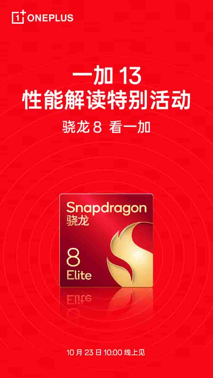 OnePlus 13 was earlier expected to be powered by Snapdragon 8 Elite SoC and now today after the official launch of this chipset, OnePlus has finally confirmed the previous rumors. OnePlus 13 will be powered by Snapdragon 8 Elite SoC. OnePlus 13 Performance Interpretation special event will be held tomorrow in China at 10:00.