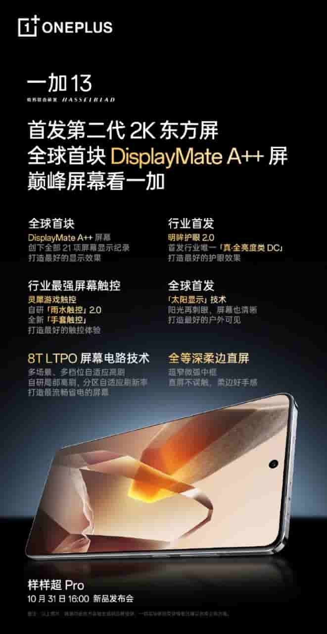 The smartphone brand OnePlus has been teasing the key details of its upcoming flagship device- OnePlus 13 for the past few days as the device is scheduled to make its China debut on 31st October at 16:00 (local time in China). Today the brand has officially confirmed some of the key display features of this smartphone.