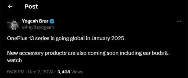 Interestingly, despite OnePlus teasing the launch, a community post confirms it will take place in January 2025, though an exact date remains unknown. Meanwhile, tipster Yogesh Brar suggests that the OnePlus 13 series, including the OnePlus 13R, will debut in January 2025. He also mentioned that new accessories, such as earbuds and a smartwatch, are expected to launch alongside the series, although specific details about these accessories were not disclosed.