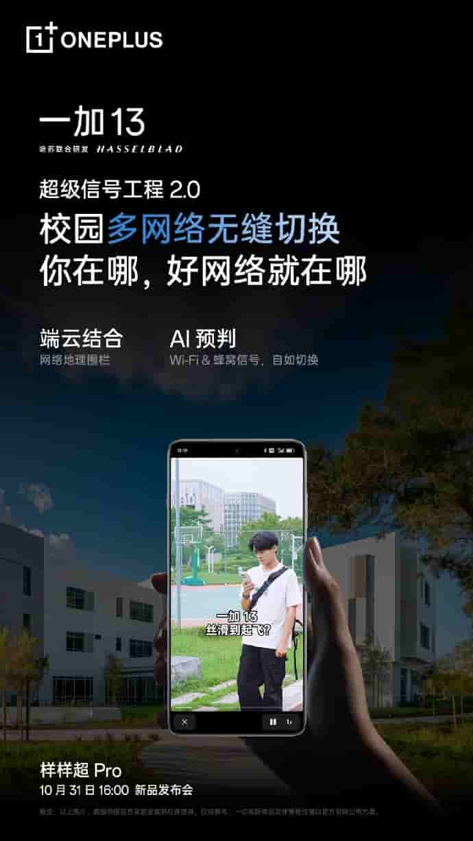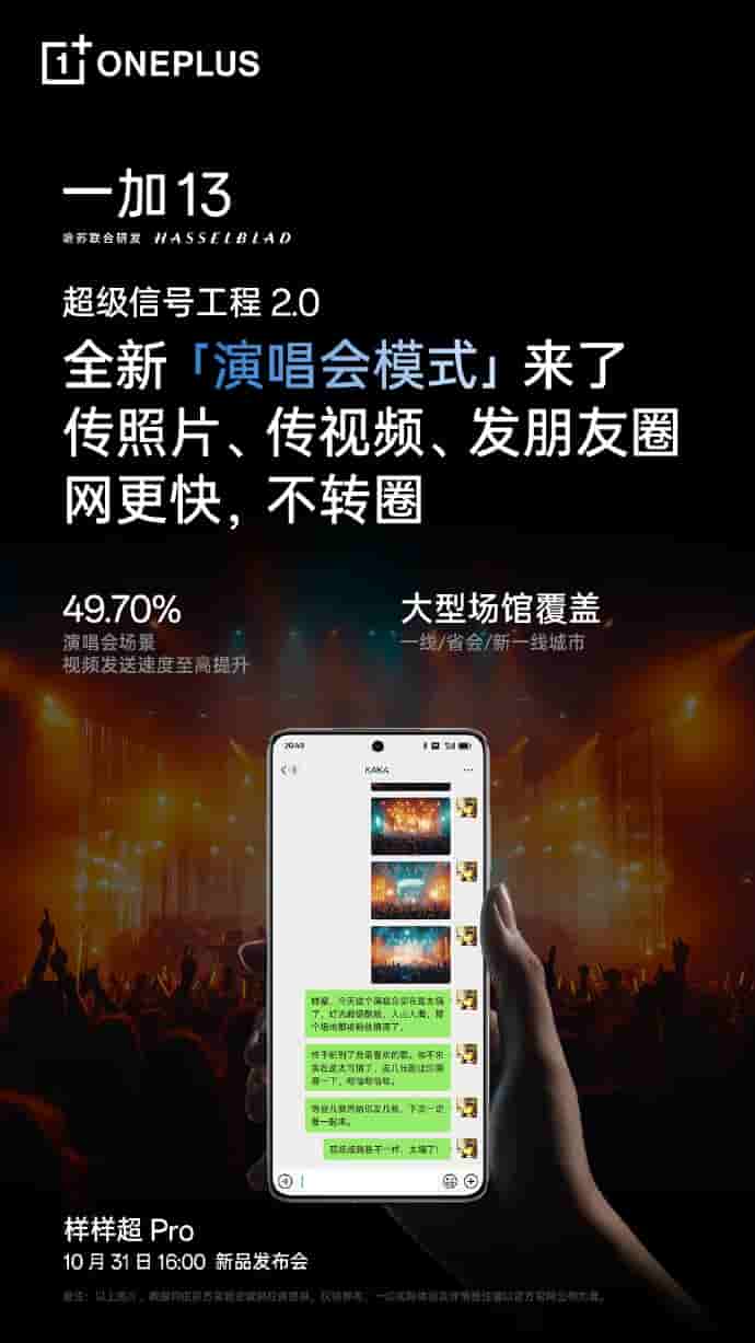 The upcoming OnePlus 13 smartphone will be equipped with Super Signal Project 2.0, offering many new capabilities to its users. First, the ‘Concert Mode’ will let users send photos, videos, and posts at 49.7% increased speed. With ‘Device Cloud Integration’ and ‘AI Prediction’, users will also easily be able to switch between networks.