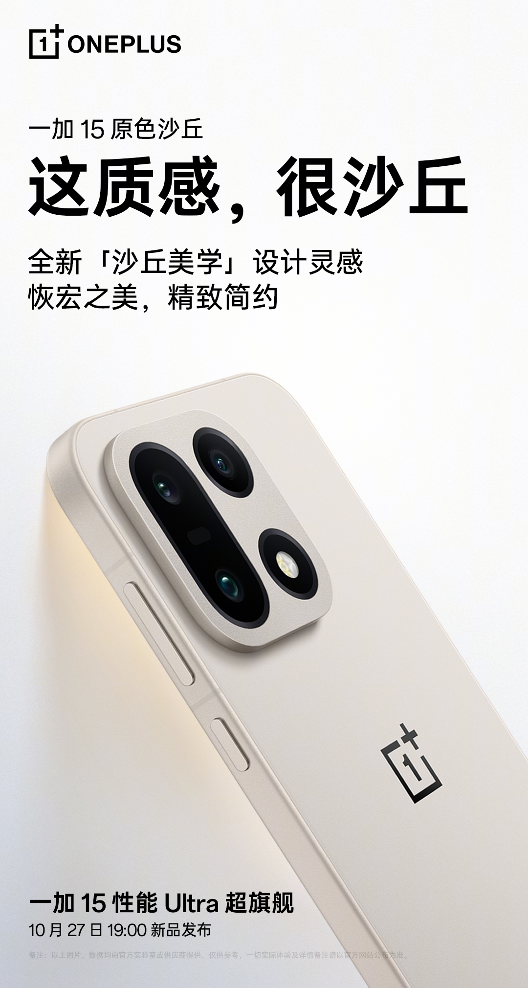 OnePlus 15 will arrive in three color options: Sand Dune, inspired by the all-new sand dune aesthetic, Absolute Black with industry’s first full matte silk lass with an ultra low reflectivity of 3.7% and Mist Purple with industry’s first 2D flowing glass infused with photosensitive material.