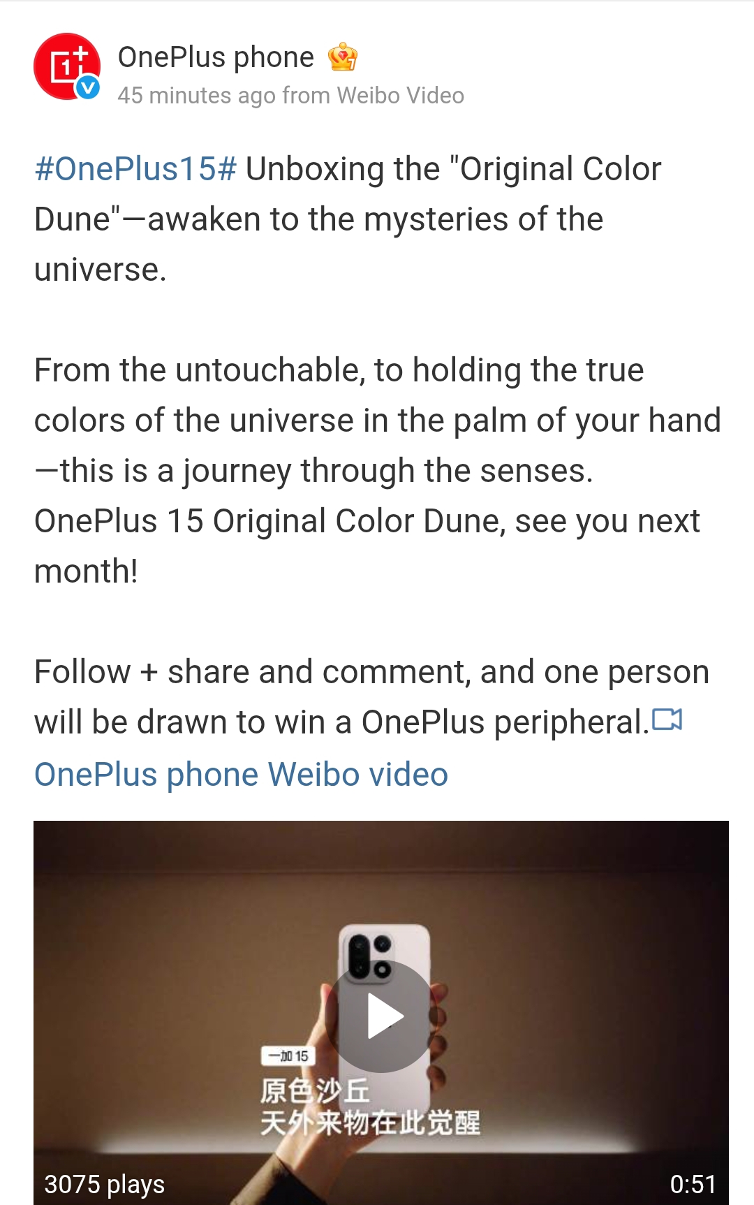 As expected, the smartphone will be making its debut next month in China. The device is confirmed to arrive in Sand Dune color option, while the rear camera module design is similar to the OnePlus 13T/13s smartphone. The design is said to be inspired by Dune Aesthetics.