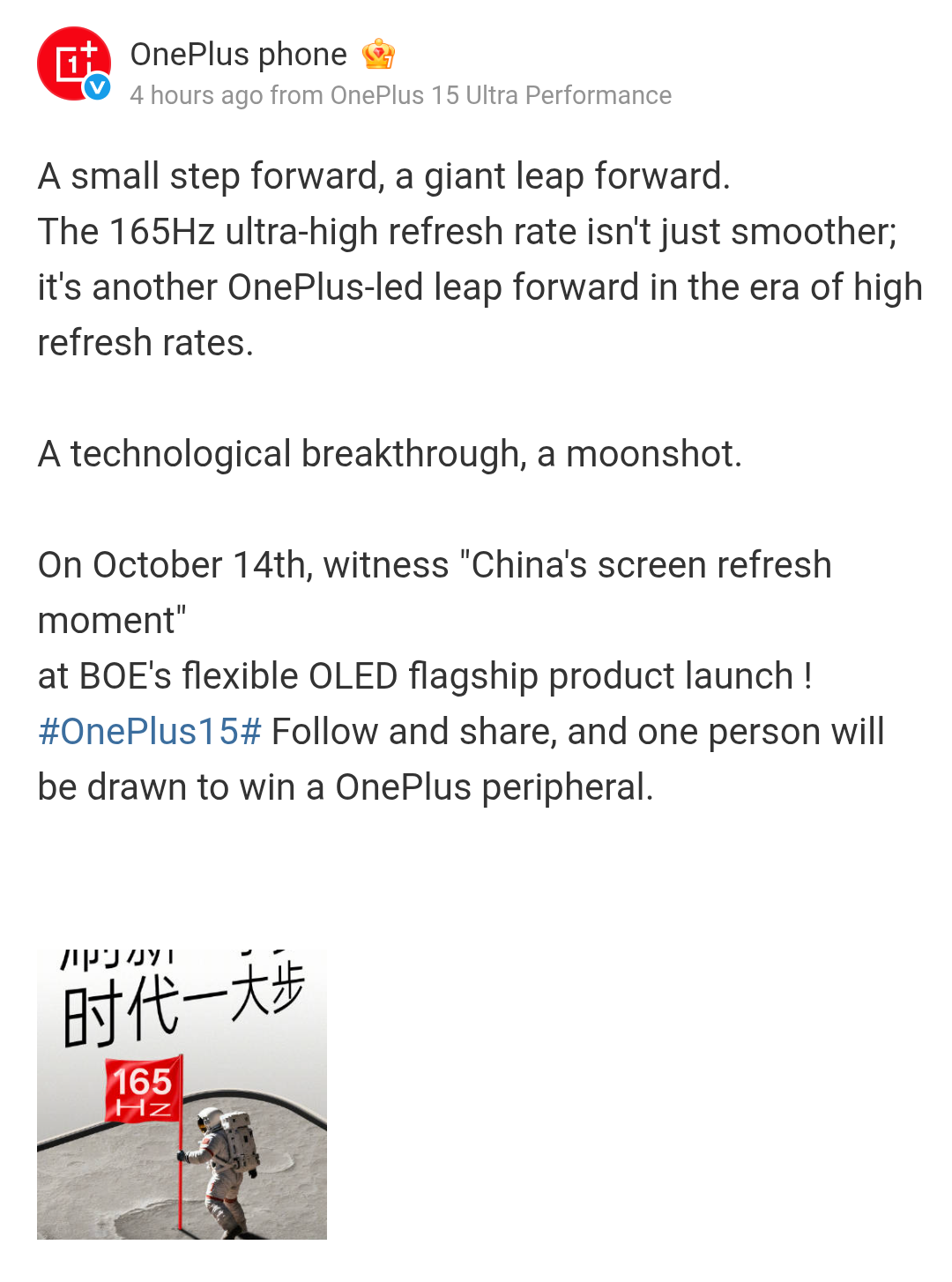 Just recently the OnePlus 15 flagship smartphone was again revealed to support a 165Hz refresh rate display, and BOE and OnePlus have together announced that the two are planning to unveil a flexible OLED flagship product tomorrow on the 14th of October 2025 in China. Following this, a few more display-related specs of this upcoming smartphone device have now been teased.