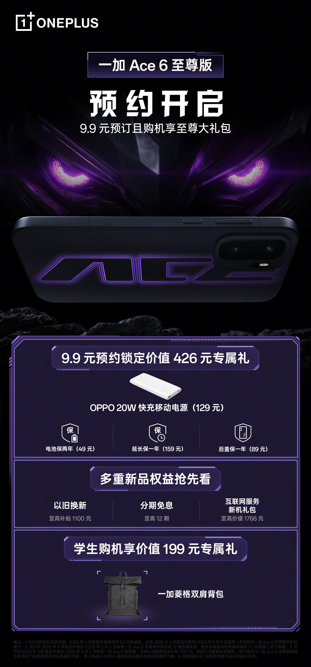 Customers who purchase the 9.9 RMB benefits package and buy the phone during the initial sales period will unlock multiple new phone gifts worth 426 RMB, including an Oppo 20W fast charging power bank worth 129 RMB, a two-year battery warranty, an extended one-year warranty, and a one-year back cover warranty. Students who purchase the phone will also receive a OnePlus diamond-patterned backpack worth 199 RMB.