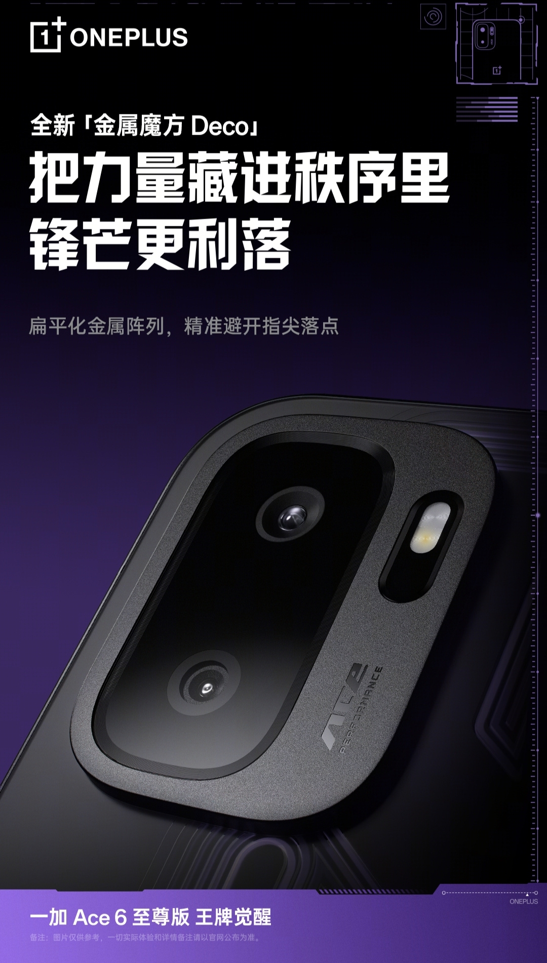 The OnePlus Ace 6 Ultra features a 3D stereoscopic engraving process that brings an exclusive Ace Awakening texture; as light sweeps across it, a purple flame appears at your fingertips. The metal cube Deco, a flat metal array, precisely avoids the point of contact with your fingertips. Meanwhile, the heat-insulating metal frame, paired with extra-large rounded corners, blocks heat while fitting more snugly in the palm.