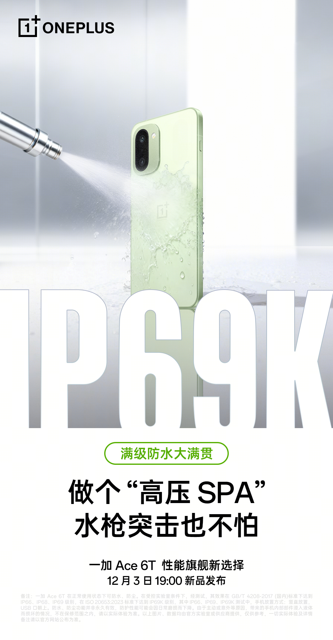 OnePlus Ace 6T confirmed to feature a 360-degree surround high-performance antenna system and an IP66/IP68/IP69/IP69K rating