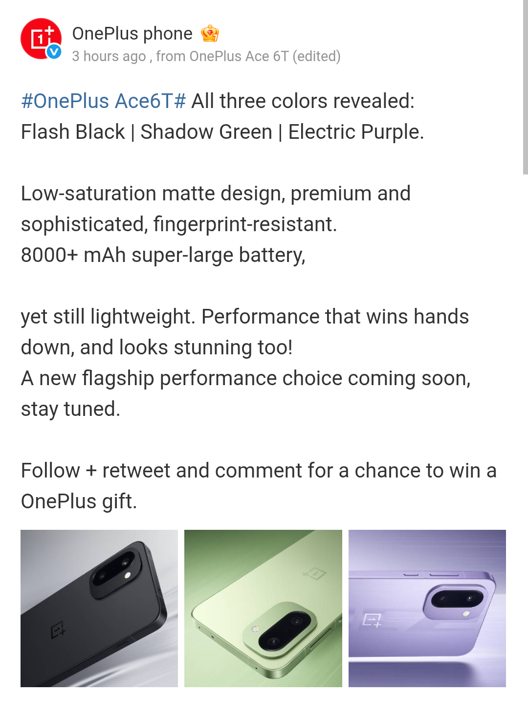 OnePlus Ace 6T – Teased Design, Color Choices, Genshin Impact Custom Edition, and 8000+ mAh Battery