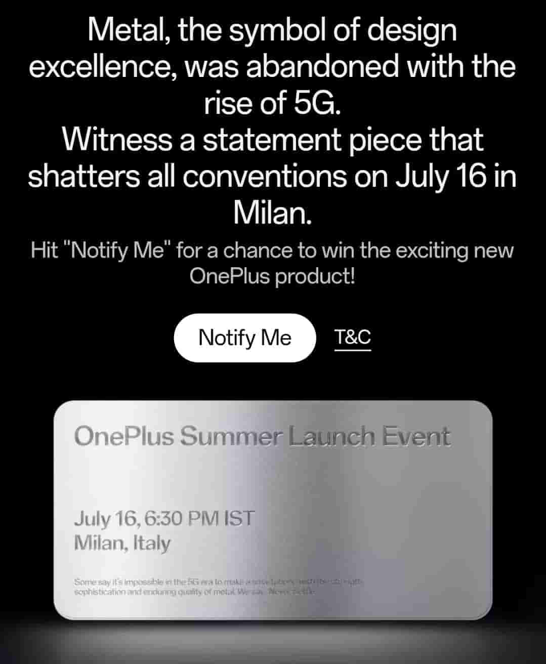 While it is also mentioned “Some say it’s impossible in the 5G era to make a smartphone with the strength, sophistication, and enduring quality of metal. We say…Never Settle.” Well, this line suggests that the company will be unveiling a new OnePlus smartphone globally, probably the highly anticipated OnePlus Nord 4.