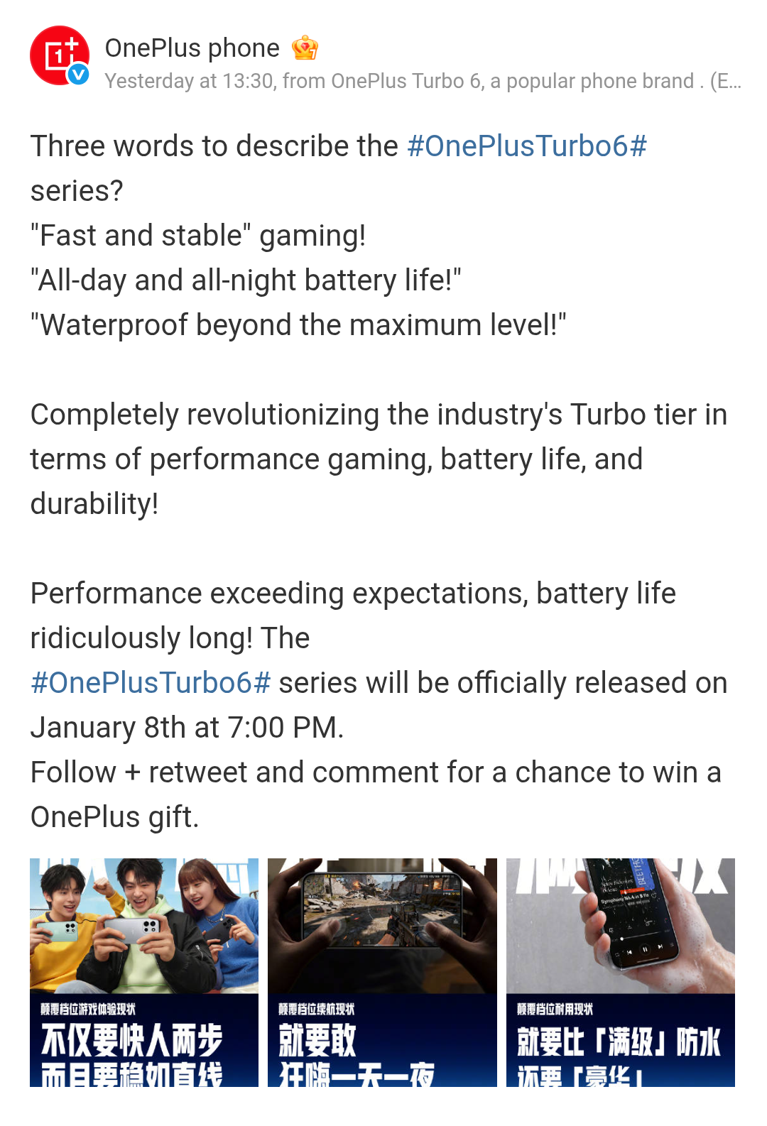 As per the new teasers, the OnePlus Turbo 6 series is again pointed out to offer a fast and stable gaming experience, and additionally it will also be providing its users an all-day and all-night battery backup too. On the durability side, it is claimed to be ‘waterproof beyond the maximum level’.