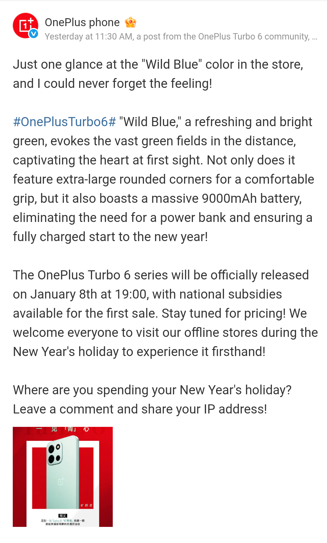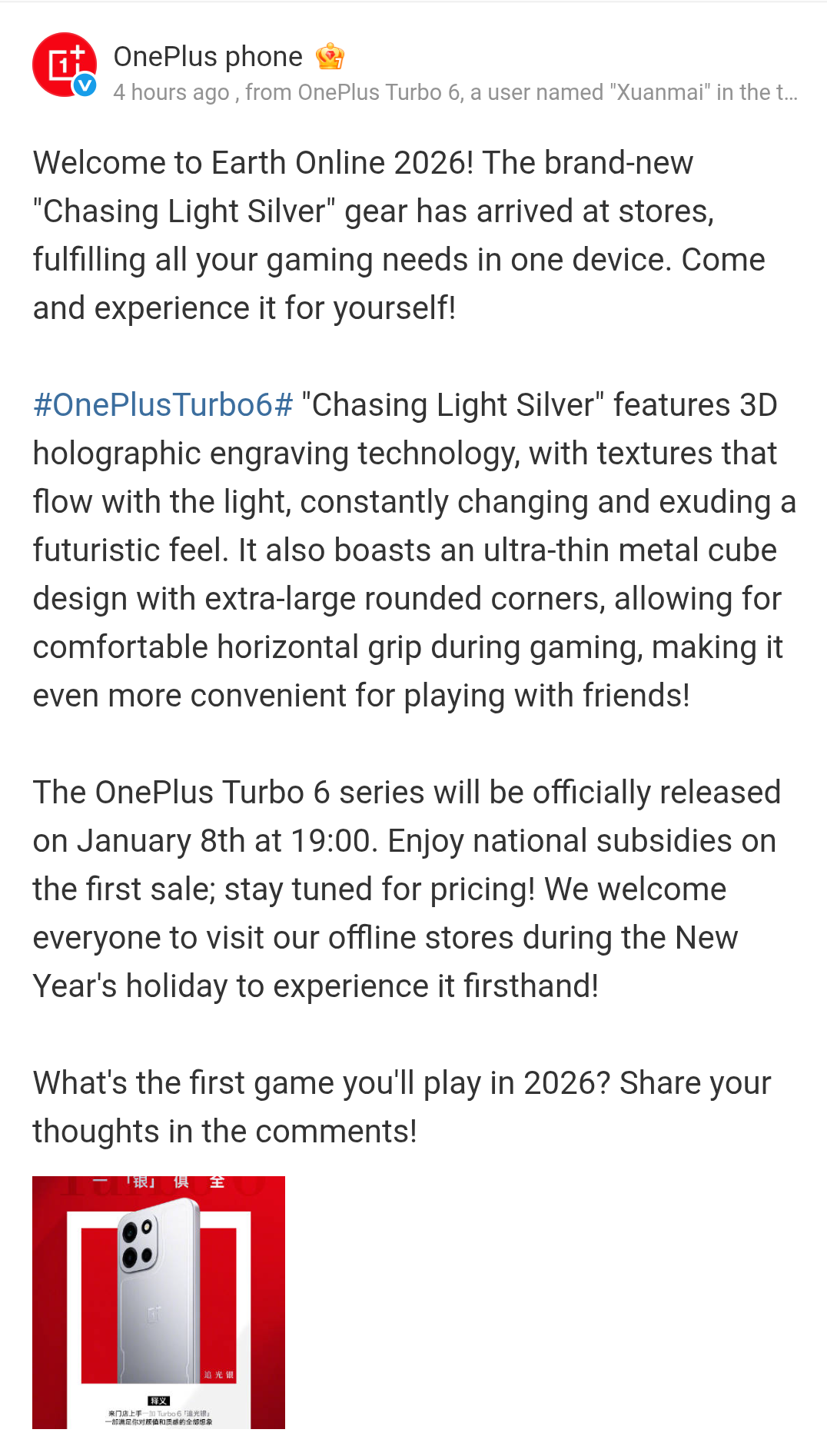 The OnePlus Turbo 6 series will be officially unveiled in the Chinese market next week on the 8th of January 2026, and the OnePlus Turbo 6 and OnePlus Turbo 6V smartphone models are going to be brought under this latest smartphone series. Ahead of the mentioned launch date, the brand has officially shared the live images of the OnePlus Turbo 6 smartphone’s Light Chasing Silver and Wild Green color variants, and both of these are now showcased at OnePlus stores.