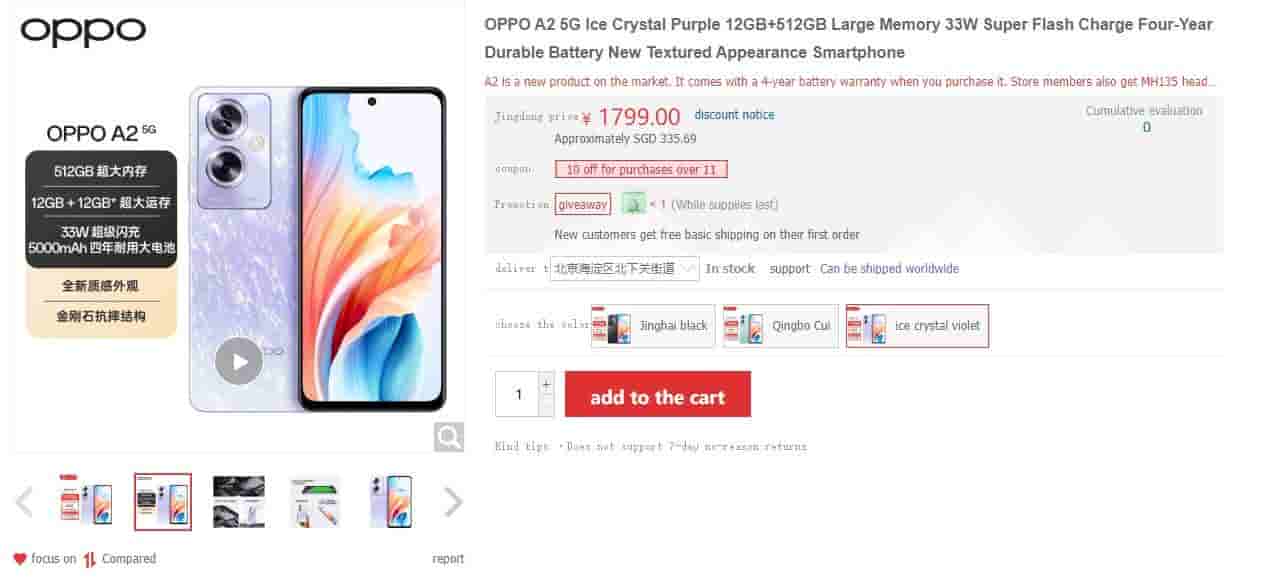 The smartphone made its debut in three color variants- Black, Green, and Violet colors. The device is available for sale starting today in the Chinese market. Consumers can purchase the device from Oppo’s official website and JD.com  It arrives in two storage configurations: