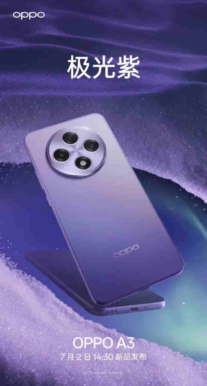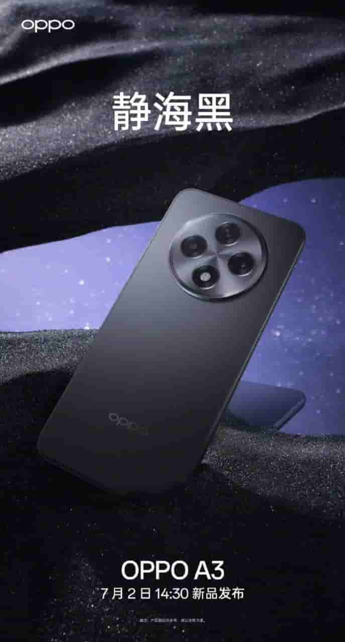 Oppo has officially announced that Oppo A3 will be launching in China on 2nd July at 14:30 (local time in China).