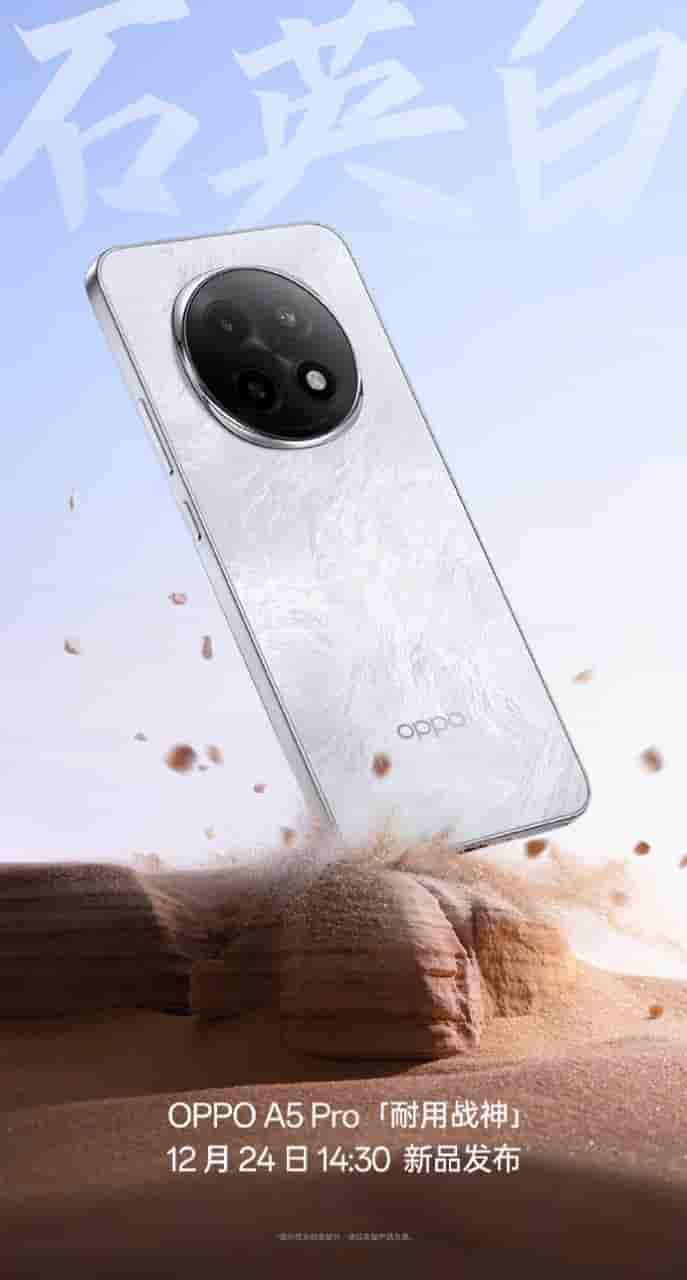 The OPPO A5 Pro smartphone has already been teased with the tagline – ‘Durable God of War’ and now it has been revealed to be super waterproof, super fall-resistant, and super durable. Its display is a quad-curved soft-edged straight screen, and is pointed out to give a comfortable in-hand feel without irritations. The device is also confirmed to arrive in three colors – Quartz White, Rock Black, and Sandstone Purple.