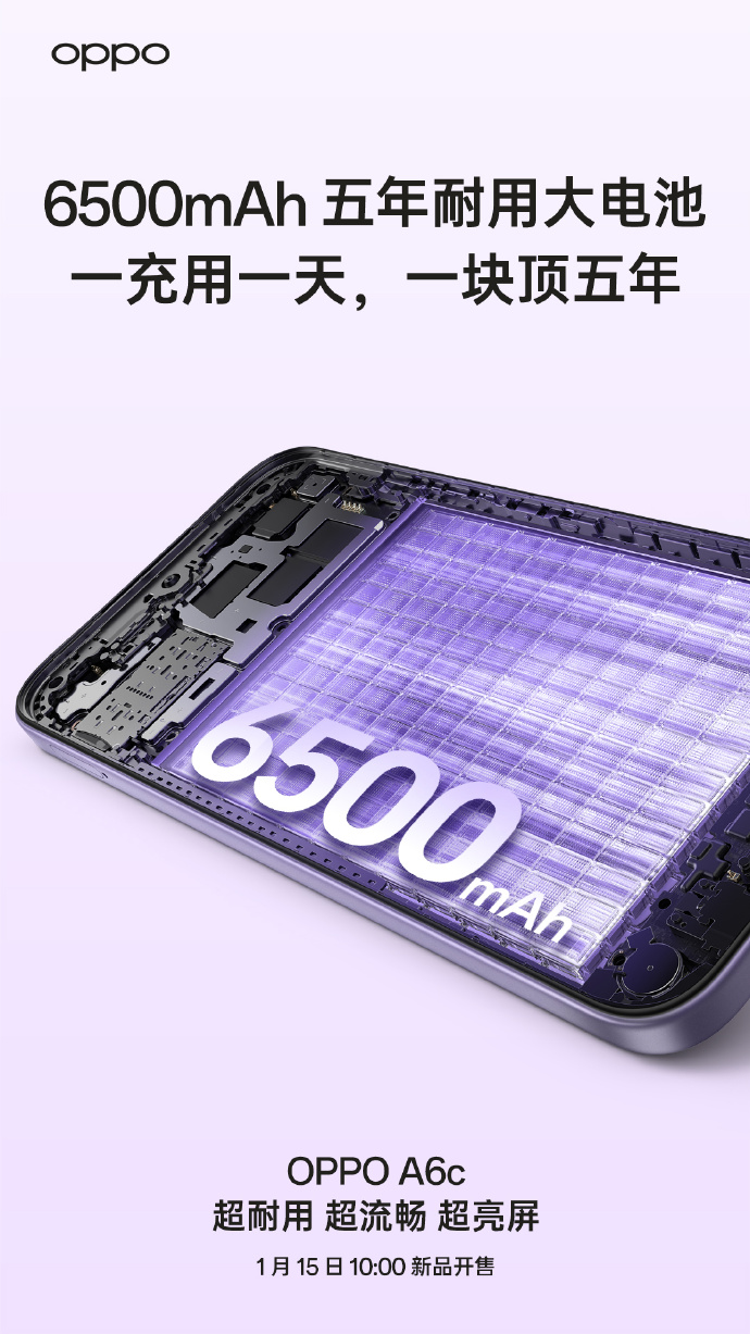 According to the latest teaser, the OPPO A6c will pack a 6,500mAh battery. The company states that the battery is designed for long-term use of up to five years and is marketed to deliver a full day of usage on a single charge. The device will also feature 48 months of system fluency protection, suggesting long-term performance optimisation.