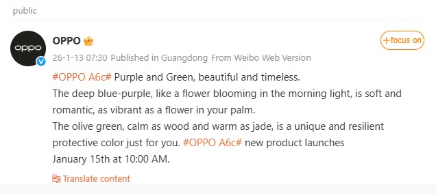 Oppo A6c Launching on January 15th in Deep Blue-Purple and Olive Green Colour Options