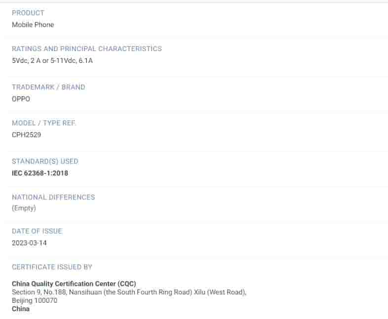 The CQC listing reveals that the OPPO A98 5G will arrive with support for 67W fast charging. In addition, the device has also been spotted at the HTML5 Test and Indonesia’s TKDN certification. The HTML5 Test listing revealed that it runs on Android 13 OS.