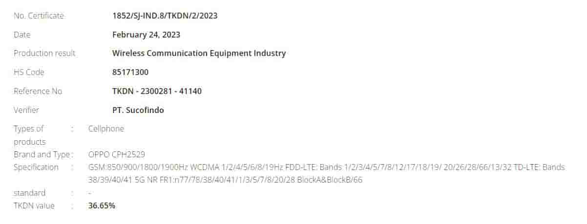 The NBTC certification of the OPPO A98 5G has revealed only a few things about it. First, it shows that it has the model number CPH2529 and that it supports 5G connectivity.