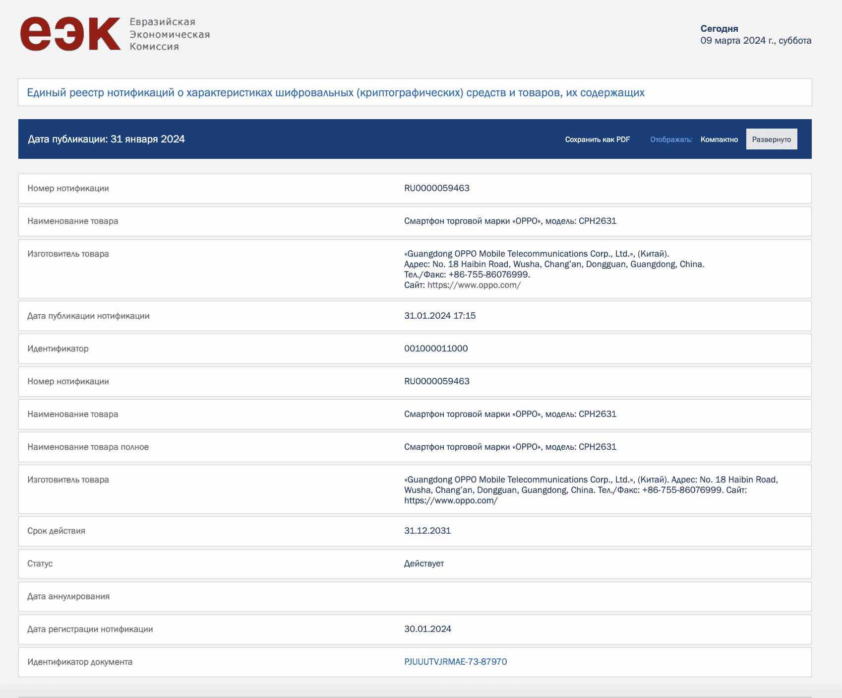 OPPO CPH2631 Smartphone Spotted on the TUV Rheinland Database: Battery Specs Revealed