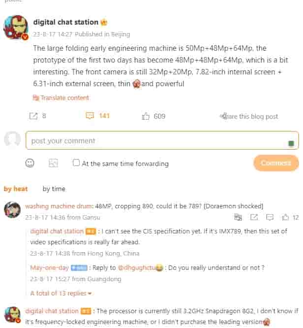 Coming back to the latest, the tipster claimed that the Find N3 has a 7.82-inch internal foldable screen with a 20-megapixel camera. On the outside, the device will feature a 6.31-inch cover AMOLED display with a 32-megapixel front camera. The tipster says that he is unsure whether the device is equipped with the Snapdragon 8 Gen 2 or the overlocked version of the chip, which also powers the Xiaomi MIX Fold 3 and Honor Magic V2.