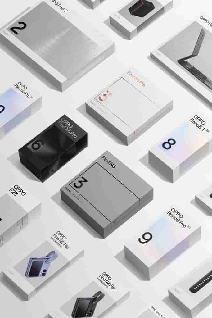 Speaking about the packaging box, OPPO has brought a change to its packaging boxes, making them more environmentally friendly and featuring a consistent design language. The boxes are designed to be light in weight and as a result of, 30% of the amount of paper used has been reduced. The packaging box is also 100% biodegradable and is made with 45% recycled fibers. Consistency in design can also be seen in the boxes with similar texts and patterns, and this will continue in the future OPPO products. The same can also be seen in the packaging box of the Find N3 smartphone as well.