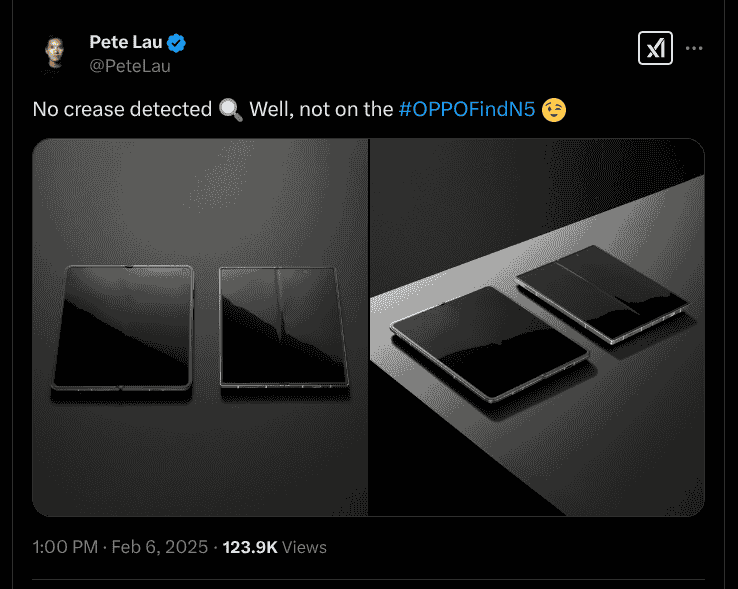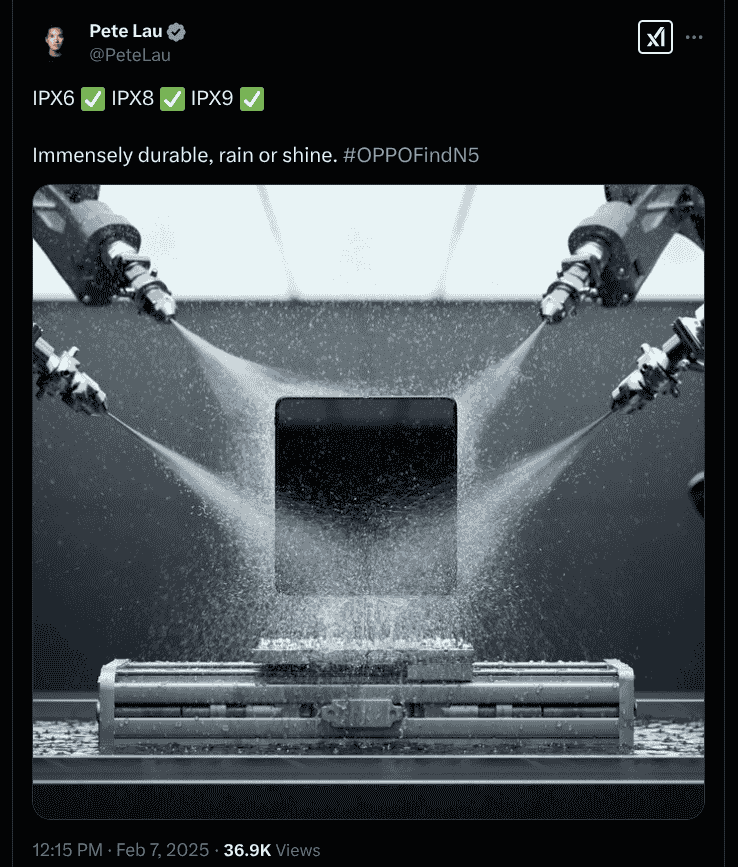 This update has been officially shared by the OPPO Chief Product Officer (and also OnePlus Co-Founder and CEO) – Pete Lau, and as per his X posts, the OPPO Find N5 foldable flagship smartphone will be featuring a no-crease main display and an IPX6/IPX8/IPX9-rated body.