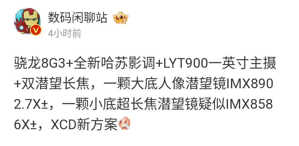 As per the tipster, the upcoming smartphone will have a quad camera system that comprises of one-inch LYT-900 main camera, dual periscope telephoto camera, IMX890 2.7X± large bottom portrait periscope, alleged IMX858 6X± small bottom ultra-telephoto periscope. The camera setup will also be arriving with a new XCD solution and a new Hasselband tone.