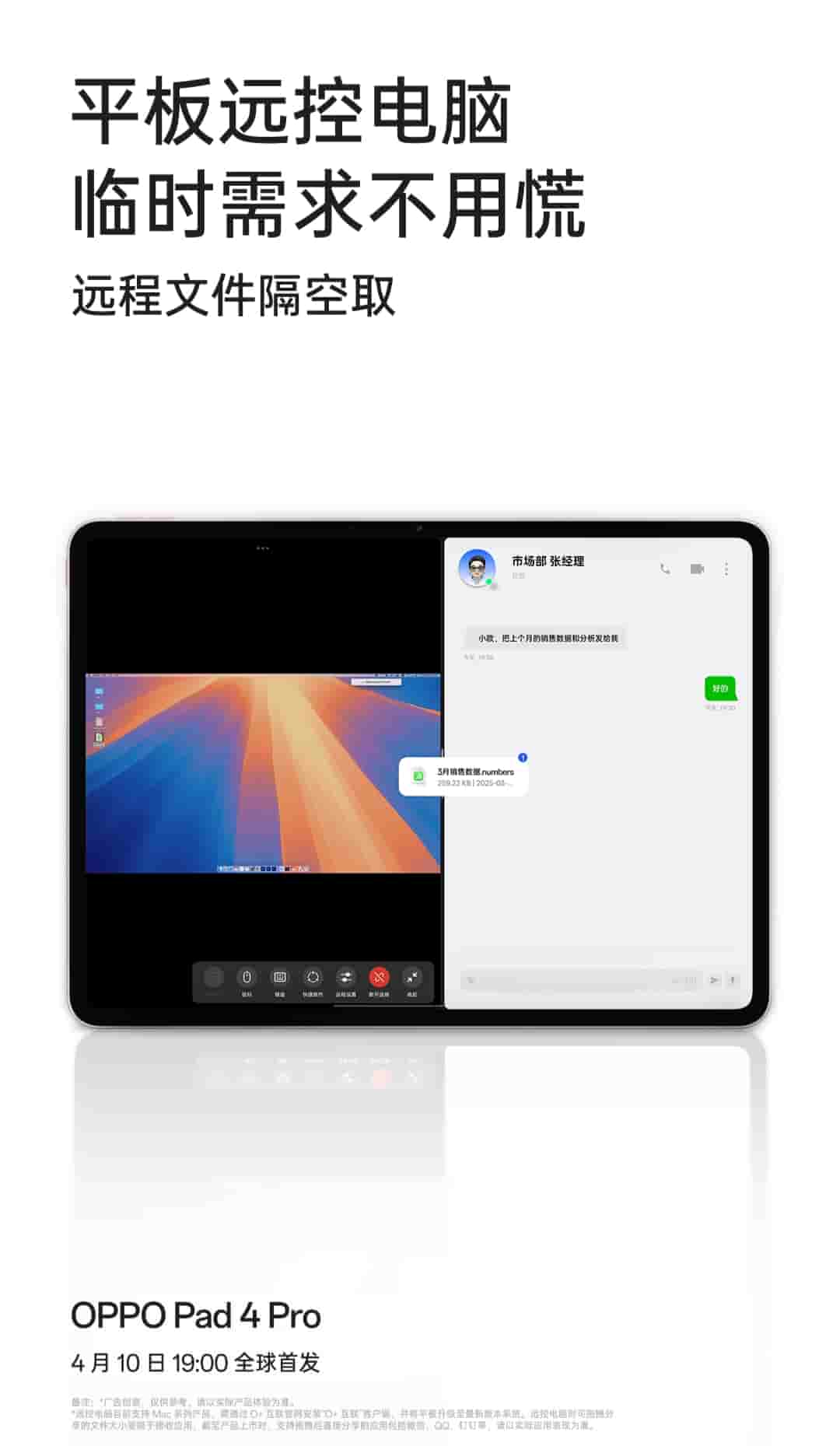 Oppo Pad 4 Pro is teased to arrive with remote file retrieval so that users can remotely control their computer with their tablet. Computer software will be available at any time so that the tablet can handle professional computer work.