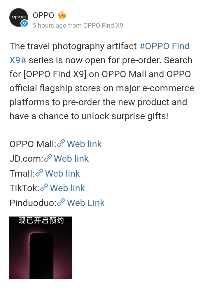 OPPO Find X9 Series – Pre-Reservation Now Live in China