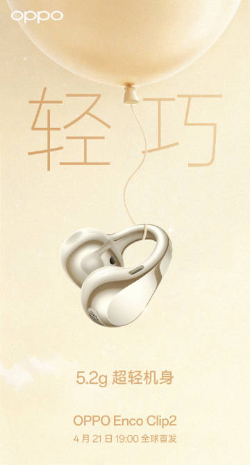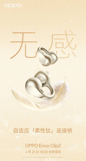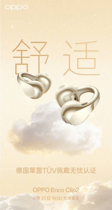 The Oppo Enco Clip 2 is teased to arrive with an adaptive “Flexible Titanium” connector and a 5.2g body. It has received German Rheinland TUV Worry-Free certification.