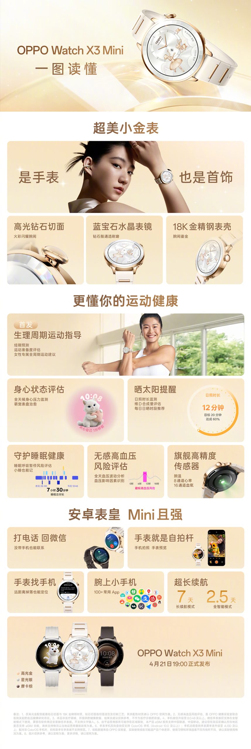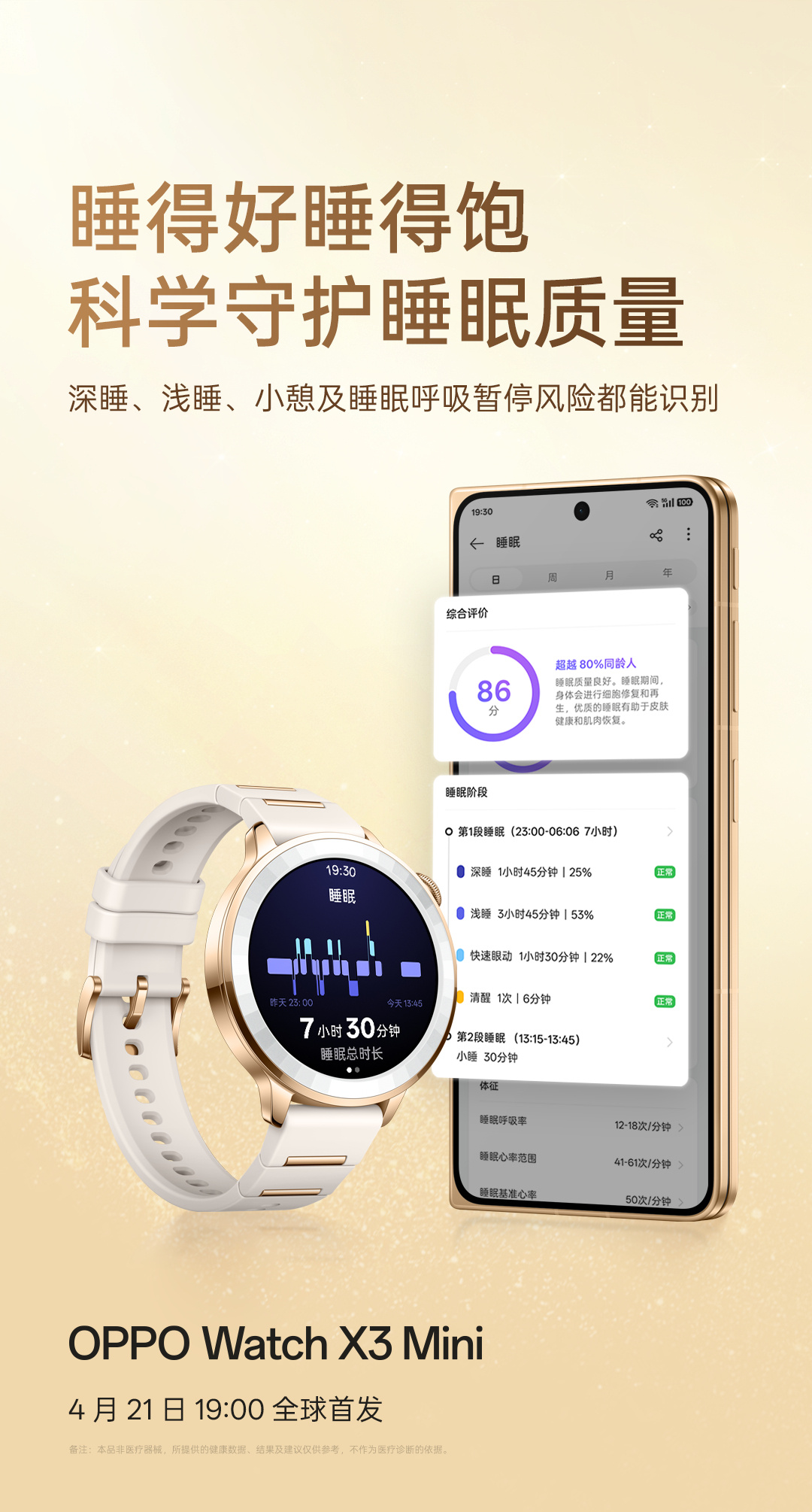 Coming to Oppo Watch X3 Mini, the smartwatch supports hypertension risk assessment, heart rate alerts and abnormal wrist temperature reminders. It accurately identifies menstrual cycles and provides scientific and efficient weight loss solutions. Users can capture real-time HRV dynamics and assess their current physical and mental stress. The smartwatch identifies the risk of deep sleep, light sleep, naps and sleep apnea.