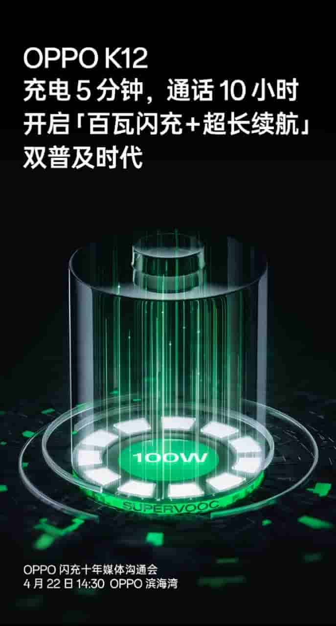 Not only this, Oppo K12 was also said to support 100W fast charging capability, and now Oppo has officially confirmed that Oppo K12 will be supporting 100W flash charging.