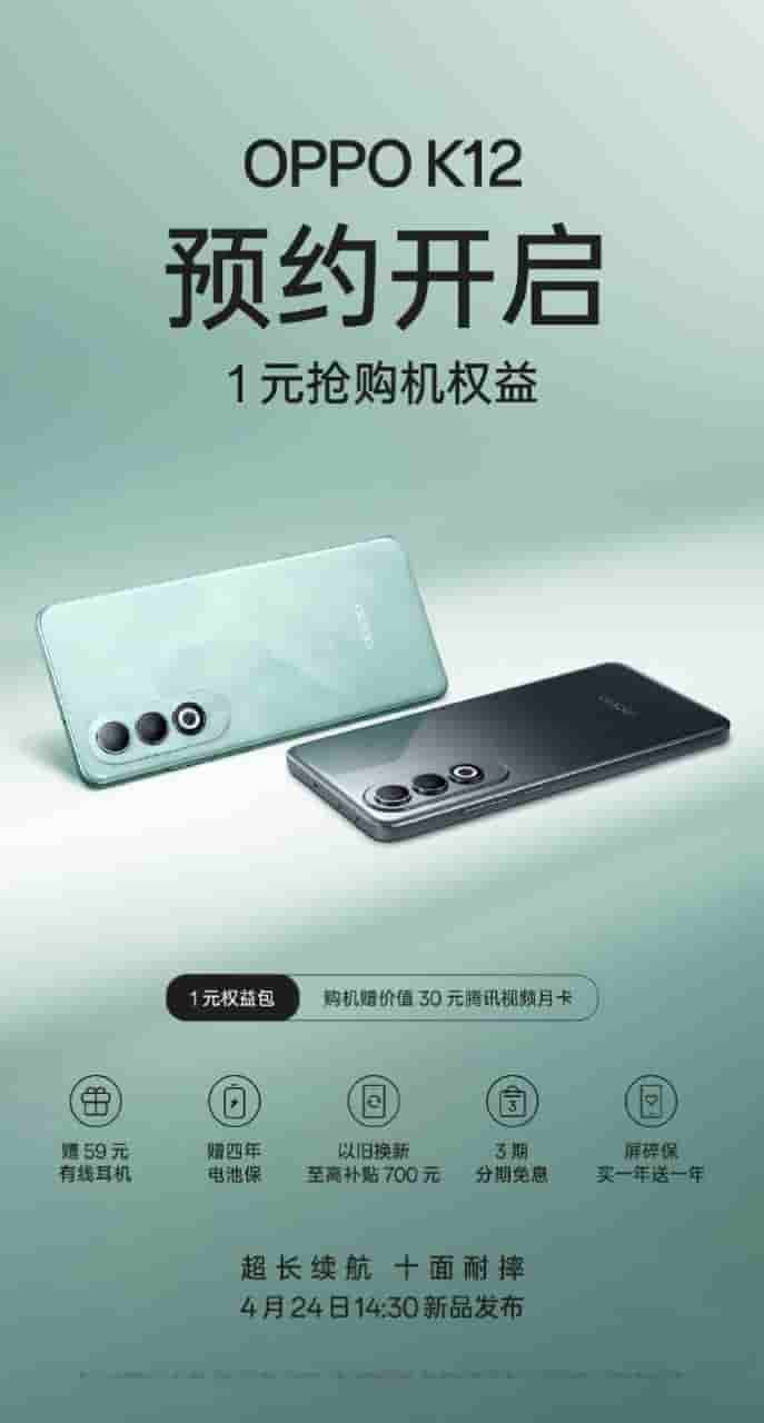 But today the brand has officially announced that the Oppo K12 smartphone will be launching in China on 24th April at 14:30 (local time in China). The reservation channels for the device are already open in China.