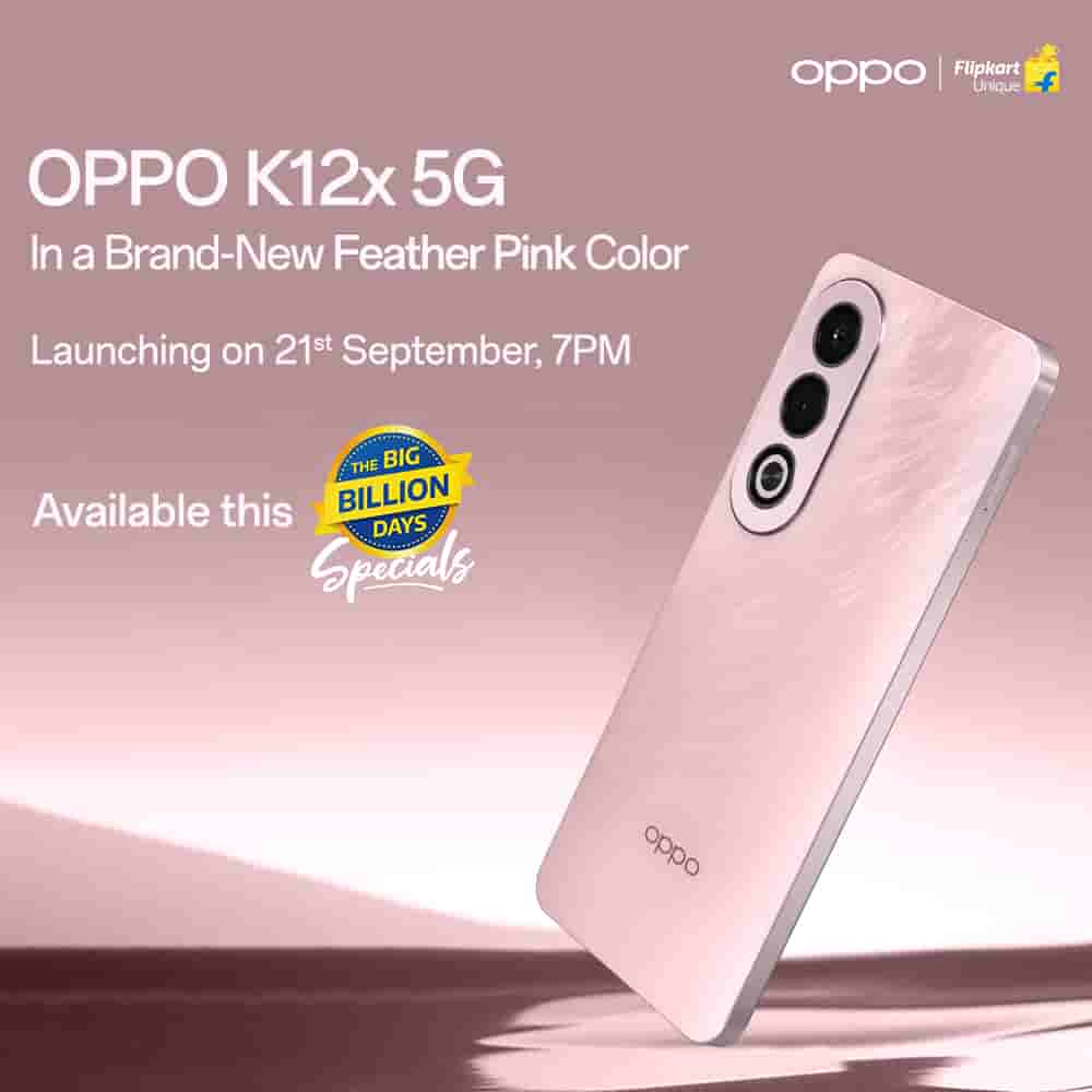 Oppo K12x 5G launching again in India but in a new Feather Pink colour on September 21st