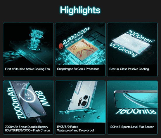 With the previous teaser updates itself, the OPPO K13 Turbo Series 5G is revealed to feature a first of its kind active cooling fan, Qualcomm Snapdragon 8s Gen 4 chip, 7000 mm² ultra large vapor chamber, and a 7000 mAh 5-year durable battery supporting 80W wired fast charging as its key highlights. Additionally, the IPX6/8/9 rated waterproof and drop-proof body and 120Hz e-sports level flat display screen are also now pointed out as its two other notable key highlights.