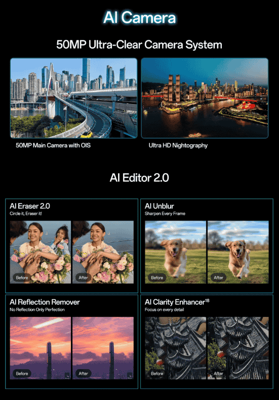 On the camera side, the OPPO K13 Turbo Series 5G is teased to sport a 50MP main camera sensor with OIS capability. AI features such as AI Eraser 2.0, AI Unblur, AI Reflection Remover, and AI Clarity Enhancer, as well as an Ultra HD Nightography mode will be supported. Personal Game Assistant, Outdoor Mode 2.019, dual stereo speakers, and X-axis linear motor are more of its teased specs. Also, the ColorOS 15 custom skin based on the Android 15 operating system will be offered within the new smartphones.