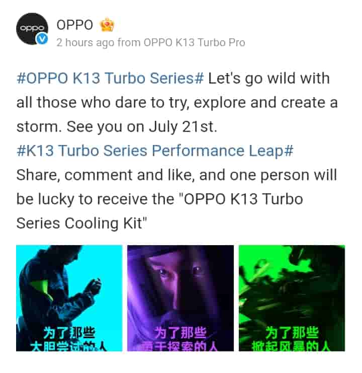 Regarding the launch, OPPO’s K13 Turbo series consisting of the OPPO K13 Turbo and OPPO K13 Turbo Pro smartphone models are scheduled to launch on the 21st of July 2025, next week in China. Over the next few days, more teaser updates are obviously going to be shared by the brand, which will reveal even more about the upcoming OPPO K13 Turbo series smartphones. Stay tuned for these future updates.