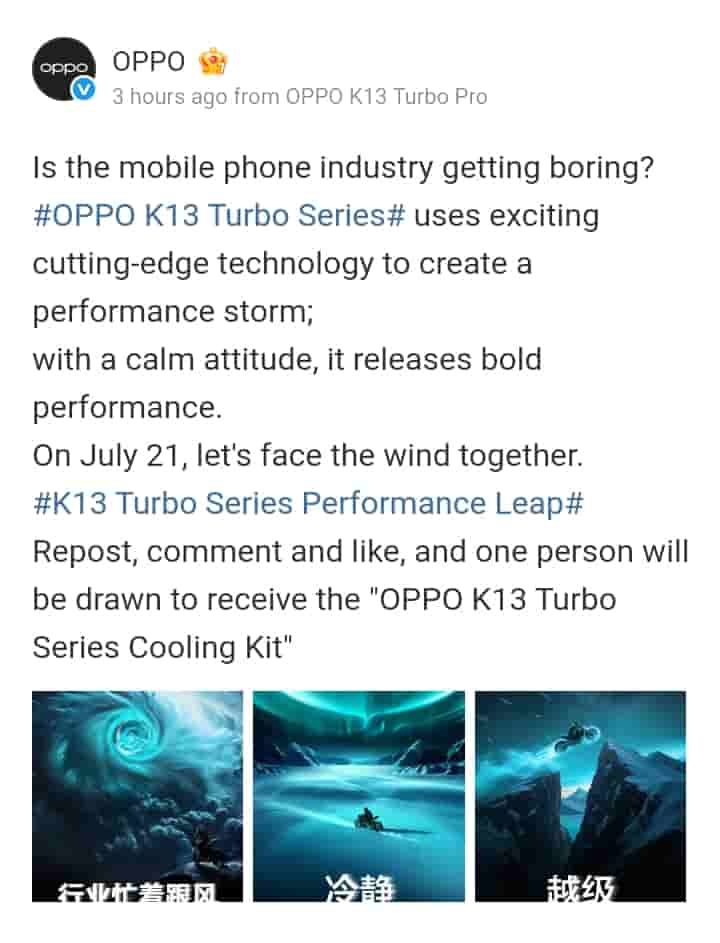 The Chinese consumer electronics maker – OPPO has already announced that it will be unveiling the K13 Turbo series next week in its home market and ahead of it, new teaser updates have now arrived. Its performance and heat dissipation features have been revealed in the new teasers.