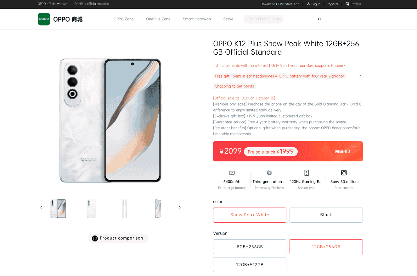 The Chinese smartphone maker, OPPO, has finally debuted its K12 Plus smartphone in China. The device has been released in three storage options and two color choices, and the pre-sale for the different models are now live with an official sale set to begin in three days.