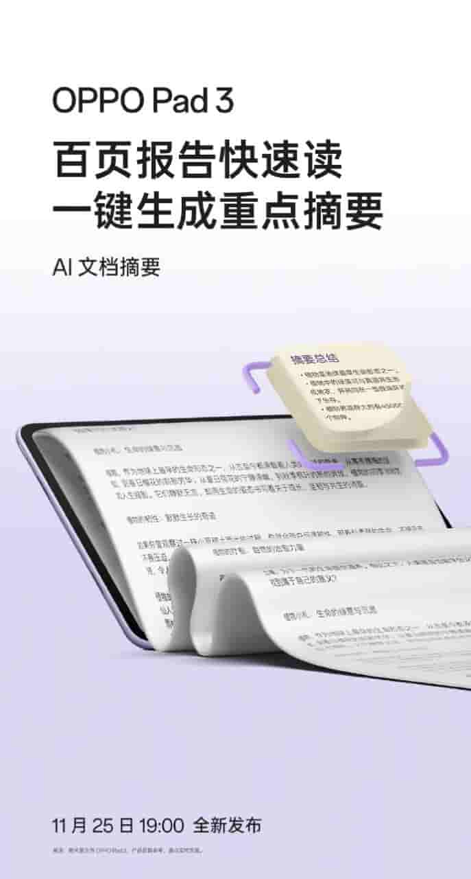 Today Oppo has officially confirmed that Oppo Pad 3 will be equipped with an AI Smart Document that will make the work of users easy and will also save them money.