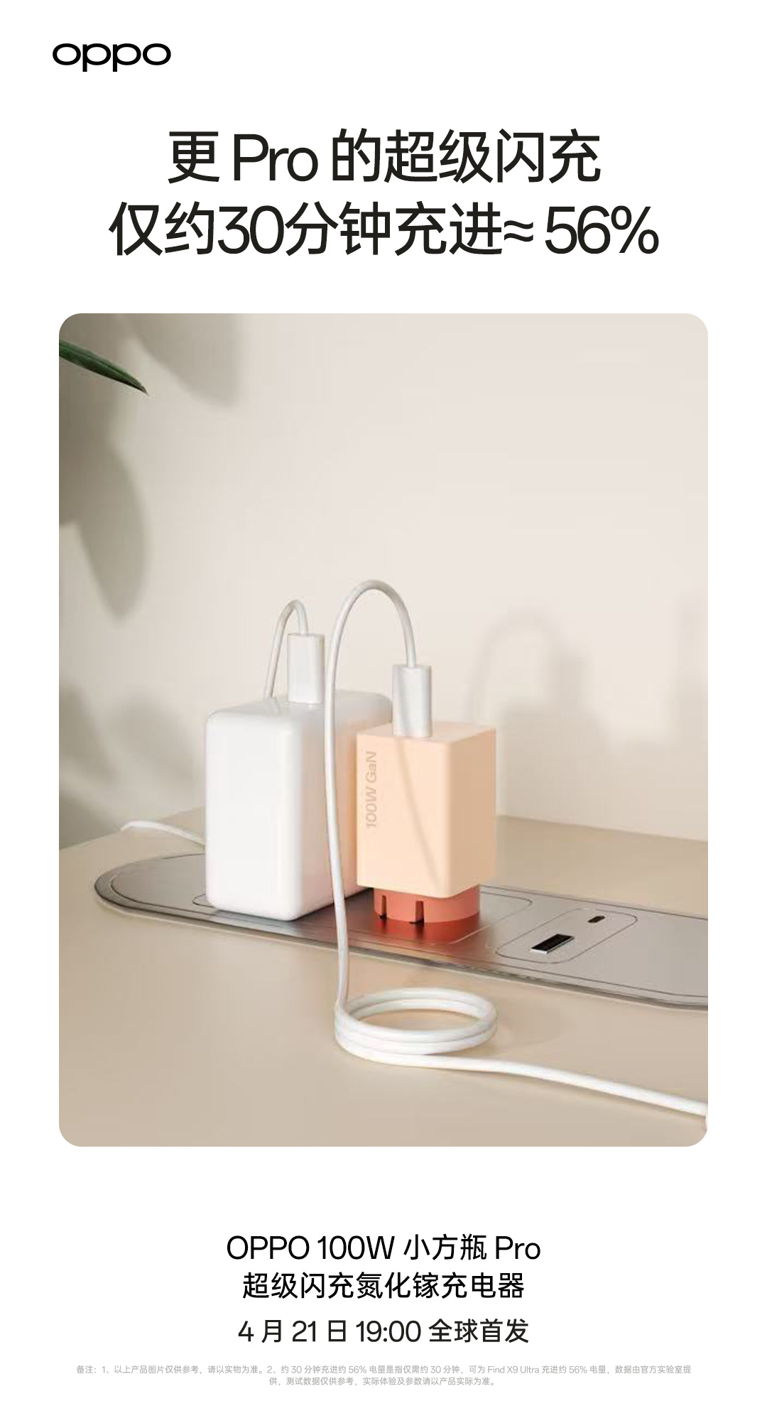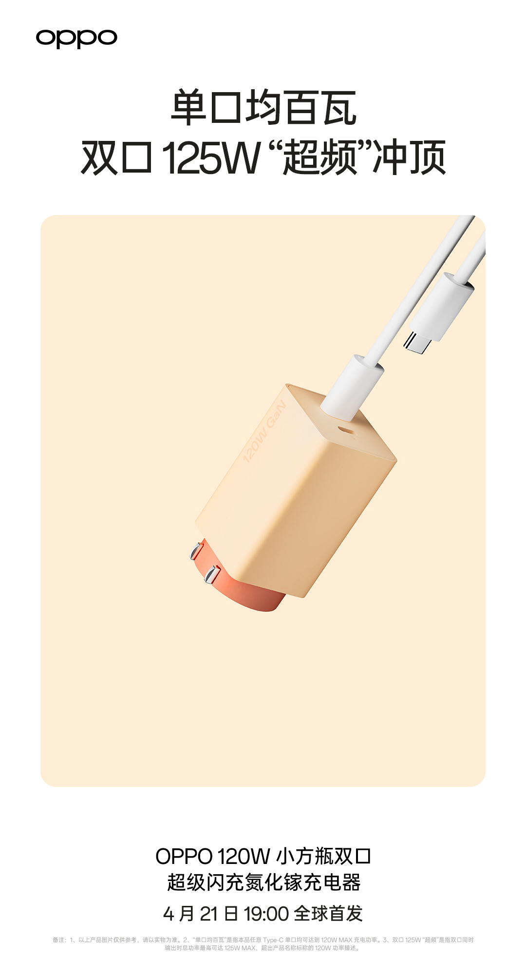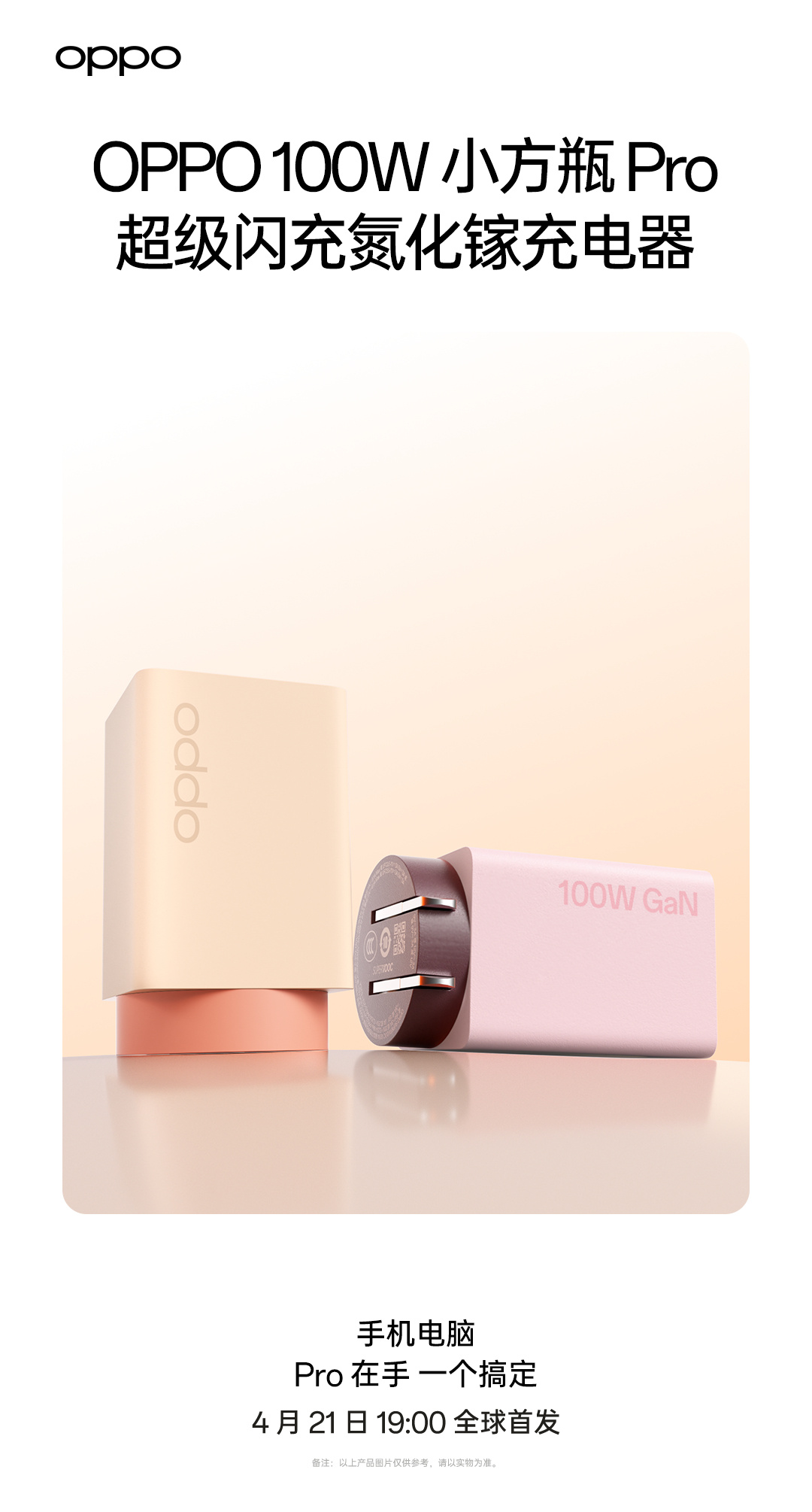 The Oppo 120W Small Square Bottle dual port Super Flash Charge GaN charger and Oppo 100W Small Bottle Pro Super Flash Charge GaN charger will launch in the Chinese market on 21st April.