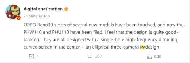 As per a few reports, OPPO Reno 10 series will include – OPPO Reno 10, OPPO Reno 10 Pro, and OPPO Reno 10 Pro+. This upcoming series is expected to first launch in China and then in India and other countries. Recently the specifications of some of the upcoming models from this series were revealed by the famous tipster Digital Chat Station and now prior to its launch, the tipster has revealed two new model numbers of the upcoming series on Weibo which is a famous Chinese social media platform.