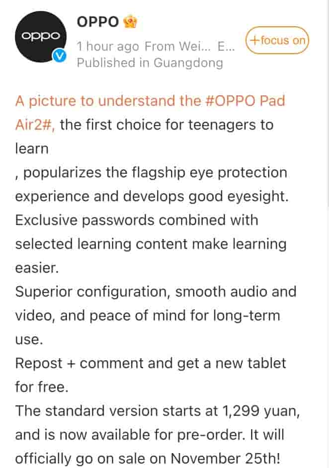 Oppo Pad Air 2: Pricing