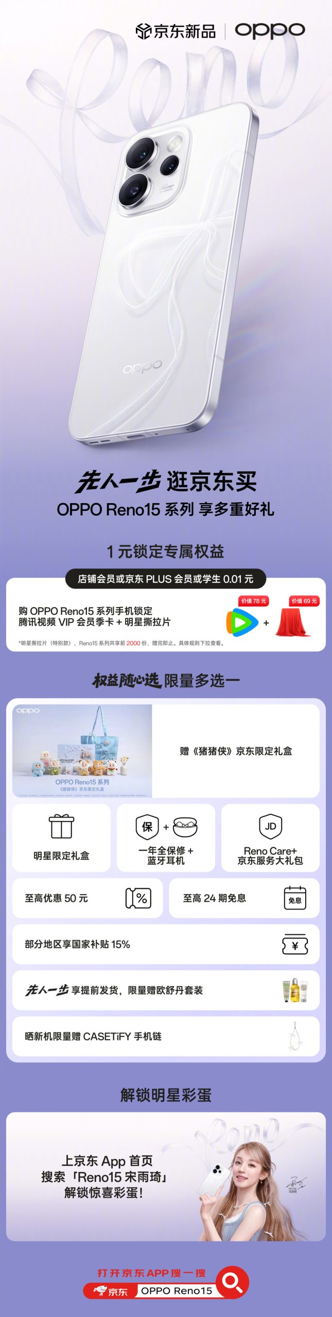 OPPO Reno 15 Series JD.com New Product Benefits Announced in China; Song Yuqi Engraved Patterns Now Available; Starlight Bow Limited Edition Gift Box Contents Revealed