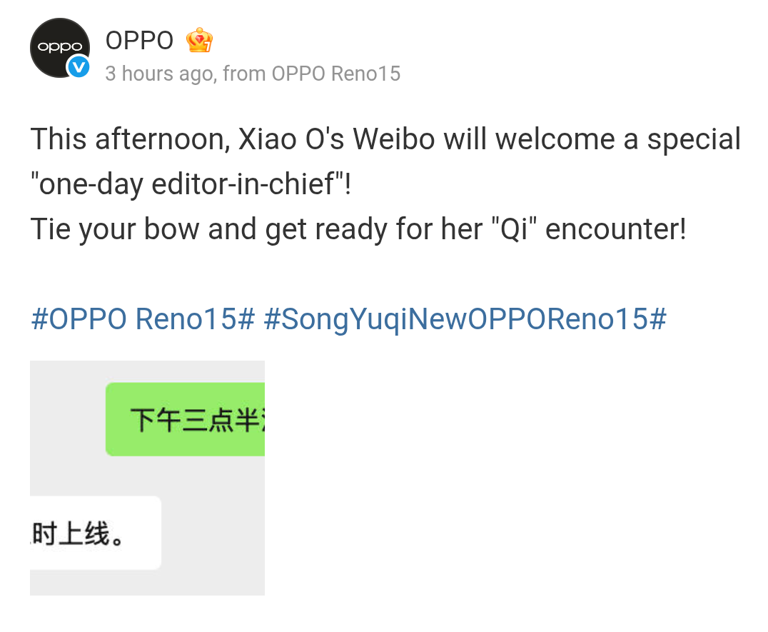 To add, today afternoon, at 3:30 PM local time in China, a special ‘one-day editor-in-chief’ will be invited, and OPPO has asked its fans to get ready for her ‘Qi’ encounter.