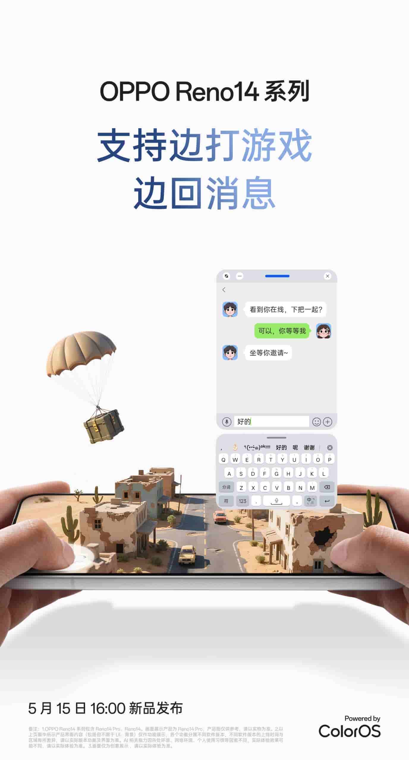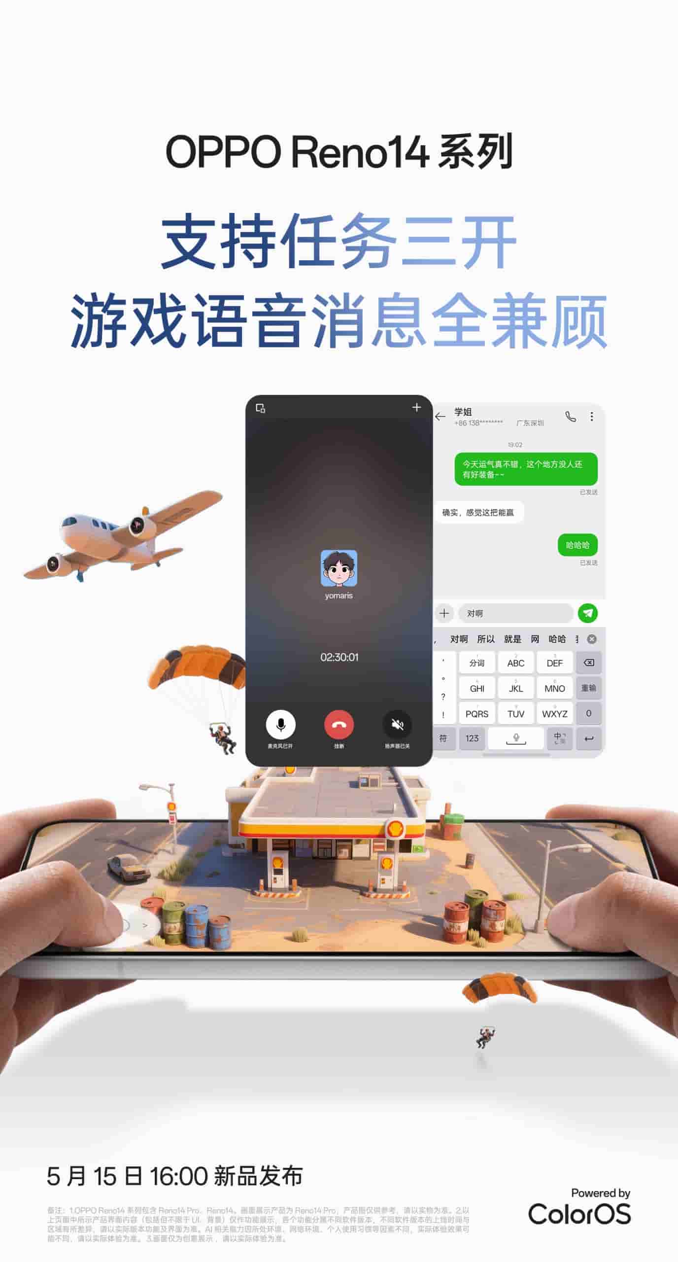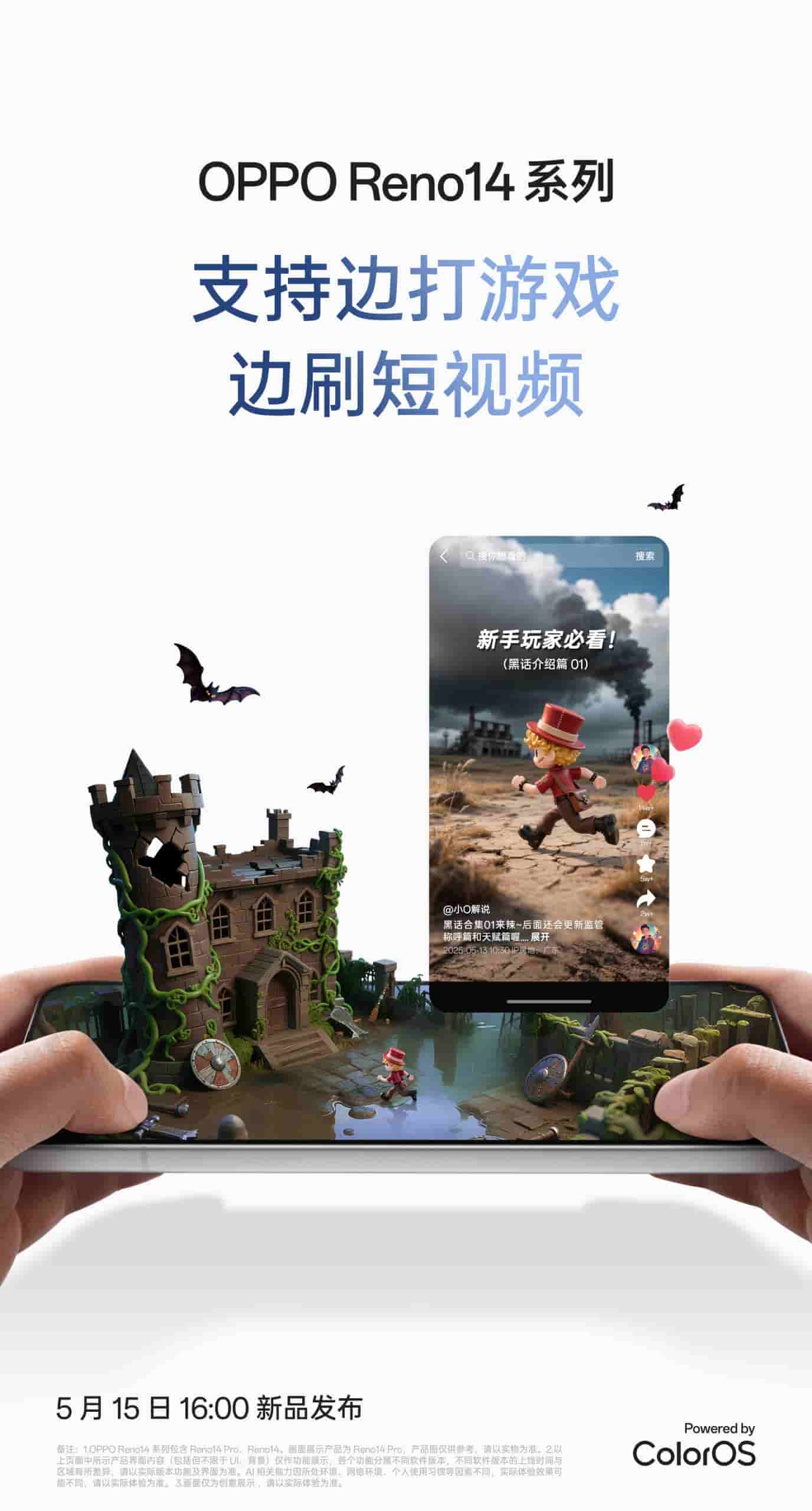 As mentioned, the Reno 14 series will have the ColorOS 15 custom skin out of the box, and multi-tasking features are present on it. Users will be able to play games while watching short videos at the same time. Background voice calls and messaging while playing games are also supported features.