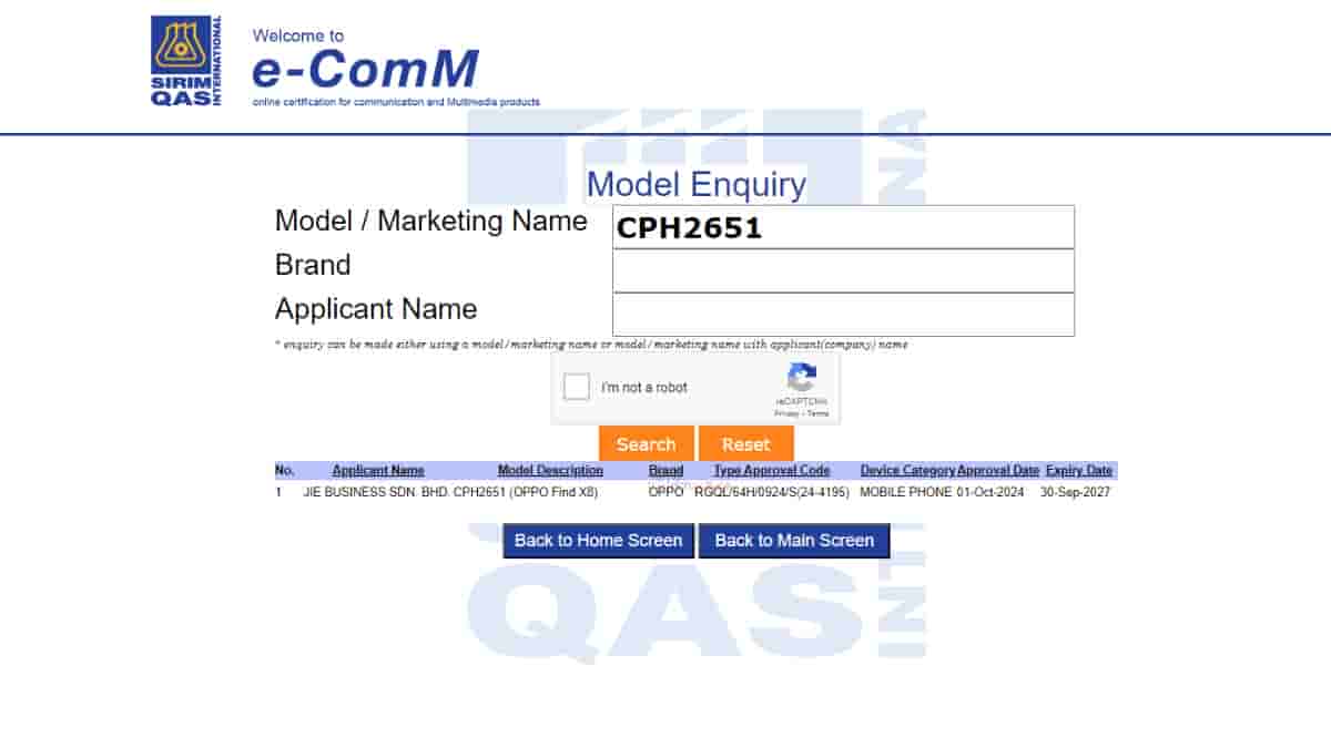 Firstly about the upcoming smartphone, the OPPO Find X8 device has appeared on the SIRIM database with the same model of ‘CPH2651’ with which it had made it to the BIS and SDPPI platforms. It has received the SIRIM certification with the type approval code of ‘RGQL/64H/0924/S(24-4195)’, and the certificate will be valid till the 30th of September 2027.