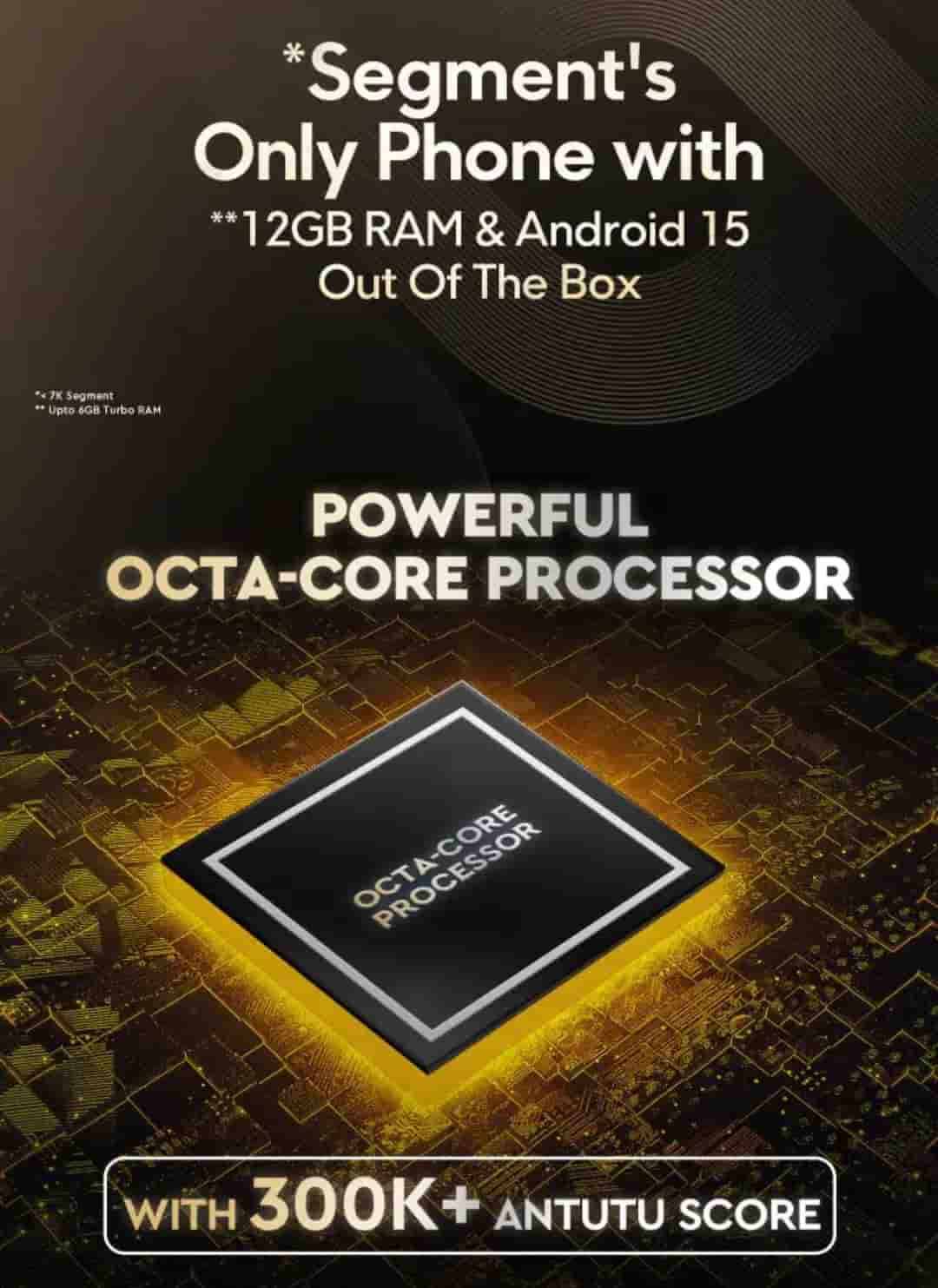 It features a 32MP dual camera and an 8MP selfie camera. The smartphone supports night photography and there are 7 film filters. It offers up to 12GB RAM and 6GB Turbo RAM, while it also comes with 2TB Expandable storage. The device is revealed to be powered by octa core processor, but the processor name is not revealed. It comes with 300K+ AnTuTu score. It runs on Android 15 OS while the smartphone will receive 2 years of Android updates and 4 years of security patches. Other features include- side fingerprint sensor, 3.5mm headphone jack, dual WiFi band, and supports running 9+ apps simultaneously.