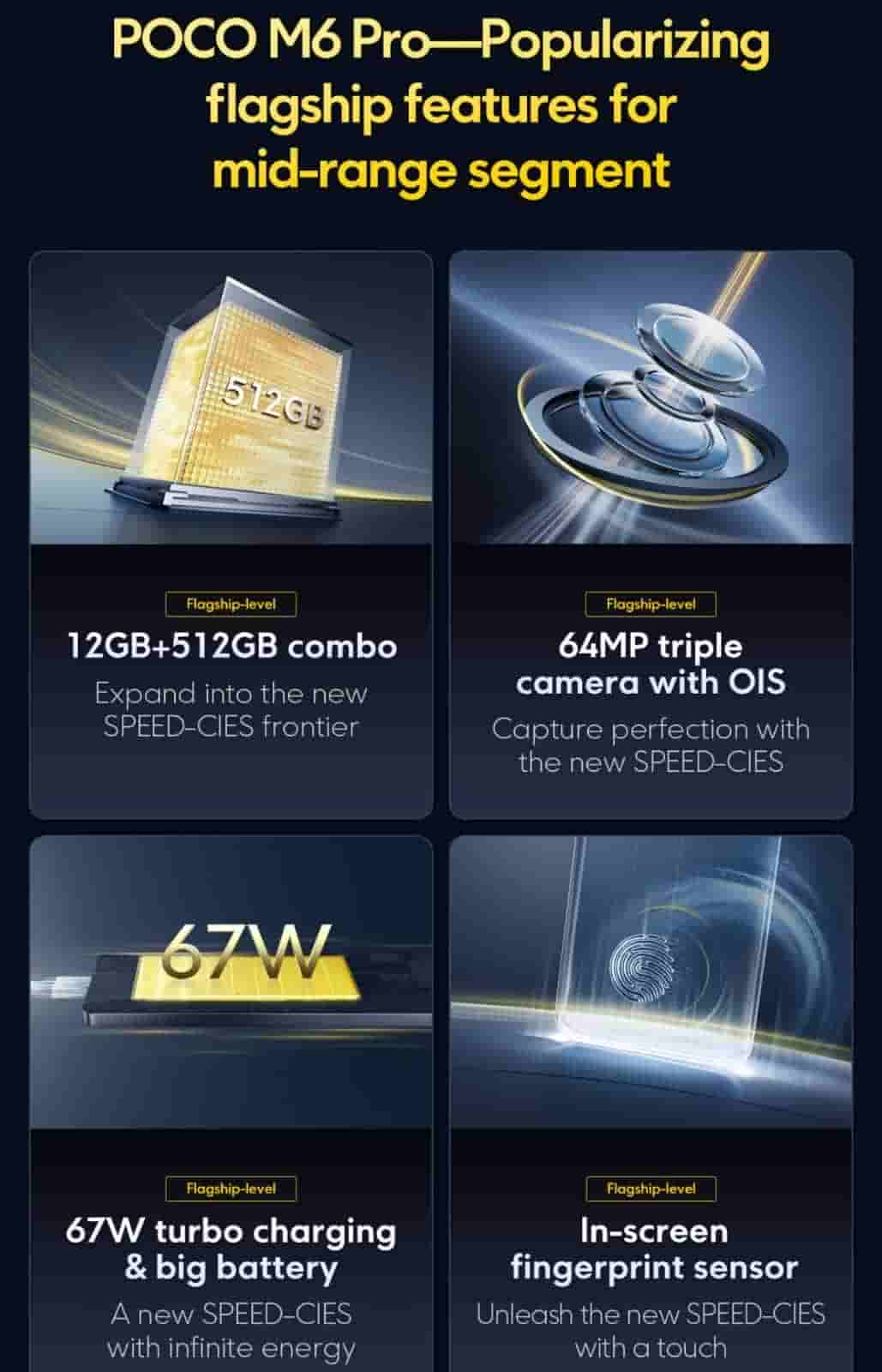 Now the company has unveiled one more specs and that is about the memory and storage. As per the recent post by POCO Global the POCO X6 series and M6 Pro will pack storage up to 512 GB and RAM up to 12GB. You can see the same on its global page and on the Flipkart sales page for the X6 series.