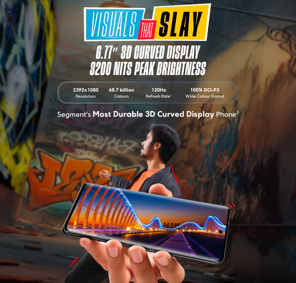 Coming to its display, it will be featuring a 6.77″ 3D curved display, which is pointed out to support 2392 x 1080 pixels resolution, 68.7 billion colors, 100% DCI-P3 wide color gamut, 3200 nits peak brightness, and 120Hz refresh rate. Additionally, the device is also claimed to be the segment’s ‘most durable 3D curved display phone’.