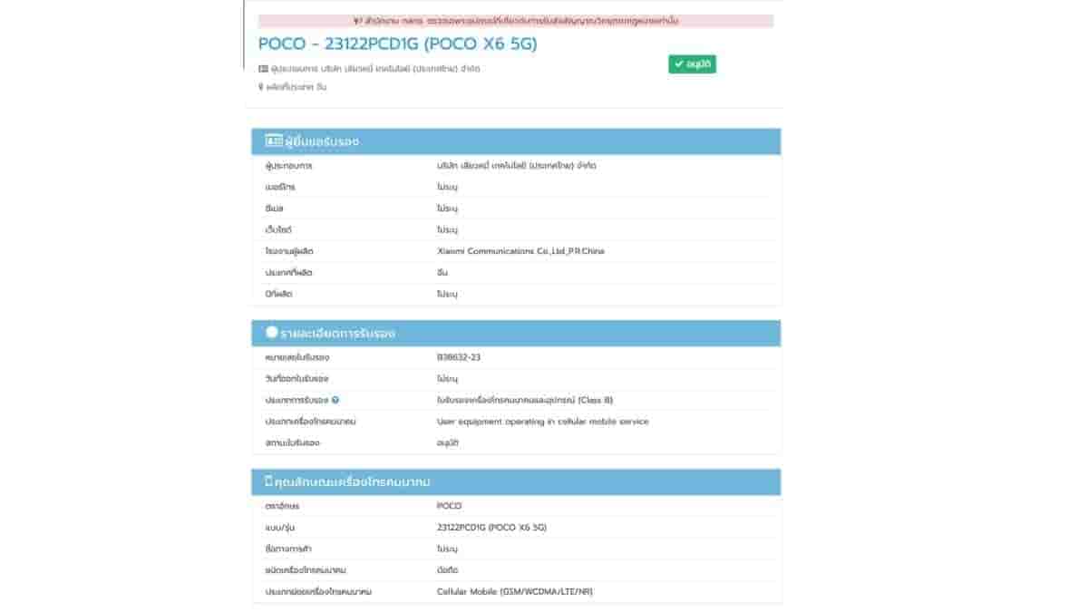 POCO X6 5G spotted on Thailand’s NBTC certification website; launch seems imminent